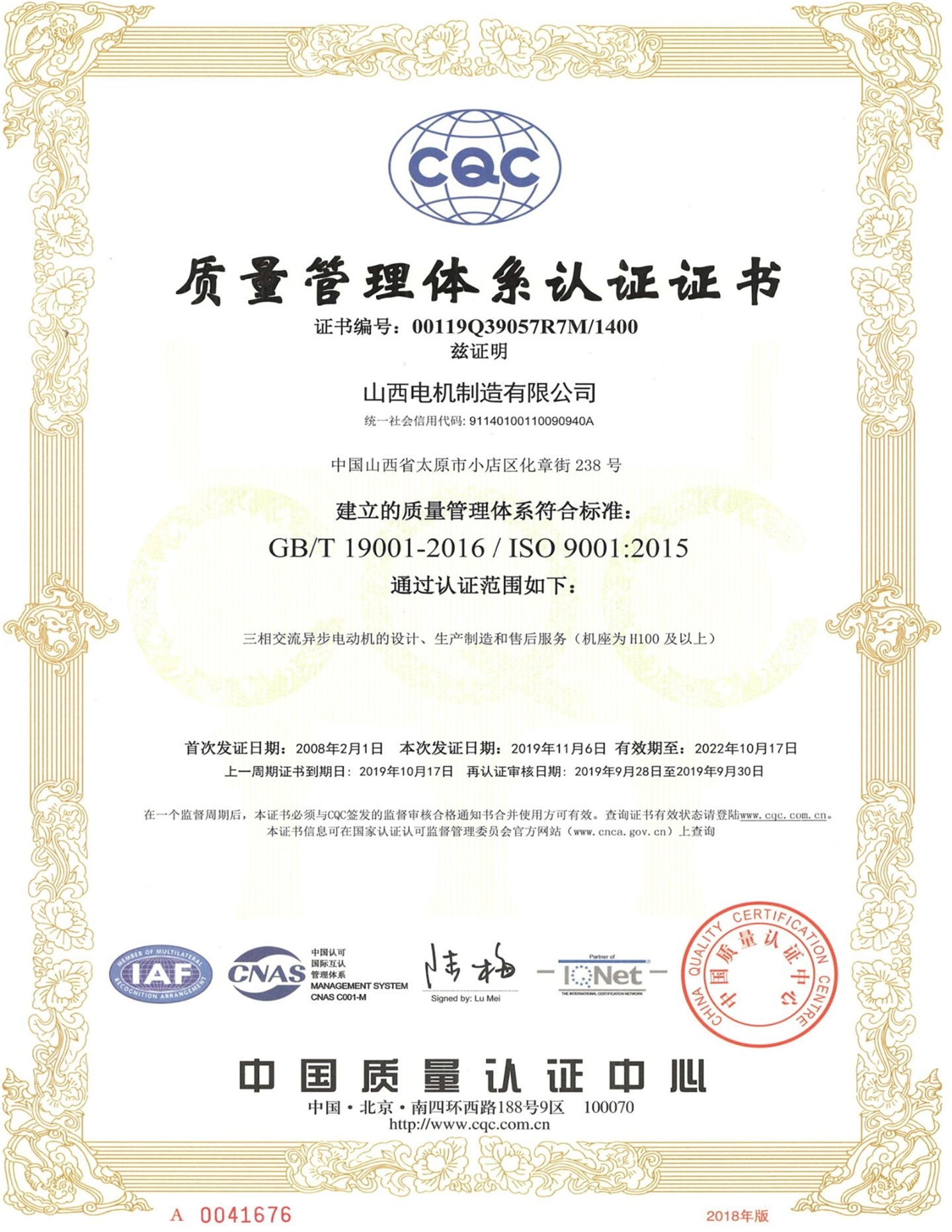 山西電機(jī)制造有限公司是一家具有70多年歷史,專業(yè)研發(fā)制造三相異步電動(dòng)機(jī)的老牌國有企業(yè),注冊(cè)資金26250萬元,現(xiàn)有在崗職工一千余人。2014年5月完成整體搬遷改造,現(xiàn)址位于太原市小店區(qū)化章街238號(hào),新增設(shè)備投資約5個(gè)億,整體裝備水平得到大幅提高。公司深度融合技術(shù)創(chuàng)新與精工制造,成功躋身"國家級(jí)高新技術(shù)企業(yè)"行列,并榮獲"省級(jí)專精特新中小企業(yè)"認(rèn)證。作為中國電器工業(yè)協(xié)會(huì)中小型電機(jī)分會(huì)副理事長單位,公司持續(xù)踐行質(zhì)量強(qiáng)企戰(zhàn)略,相繼獲評(píng)國家級(jí)AAA企業(yè)信用等級(jí)、山西省"守合同重信用"企業(yè),榮膺"中國最具影響力品牌企業(yè)"稱號(hào)。通過了質(zhì)量管理體系、環(huán)境管理體系、職業(yè)健康安全管理體系認(rèn)證,以及能源管理與知識(shí)產(chǎn)權(quán)管理體系認(rèn)證。產(chǎn)品憑借卓越品質(zhì)斬獲"山西省名牌產(chǎn)品"殊榮,在行業(yè)內(nèi)樹立起極具辨識(shí)度的品牌標(biāo)桿,贏得市場廣泛認(rèn)可與信賴。